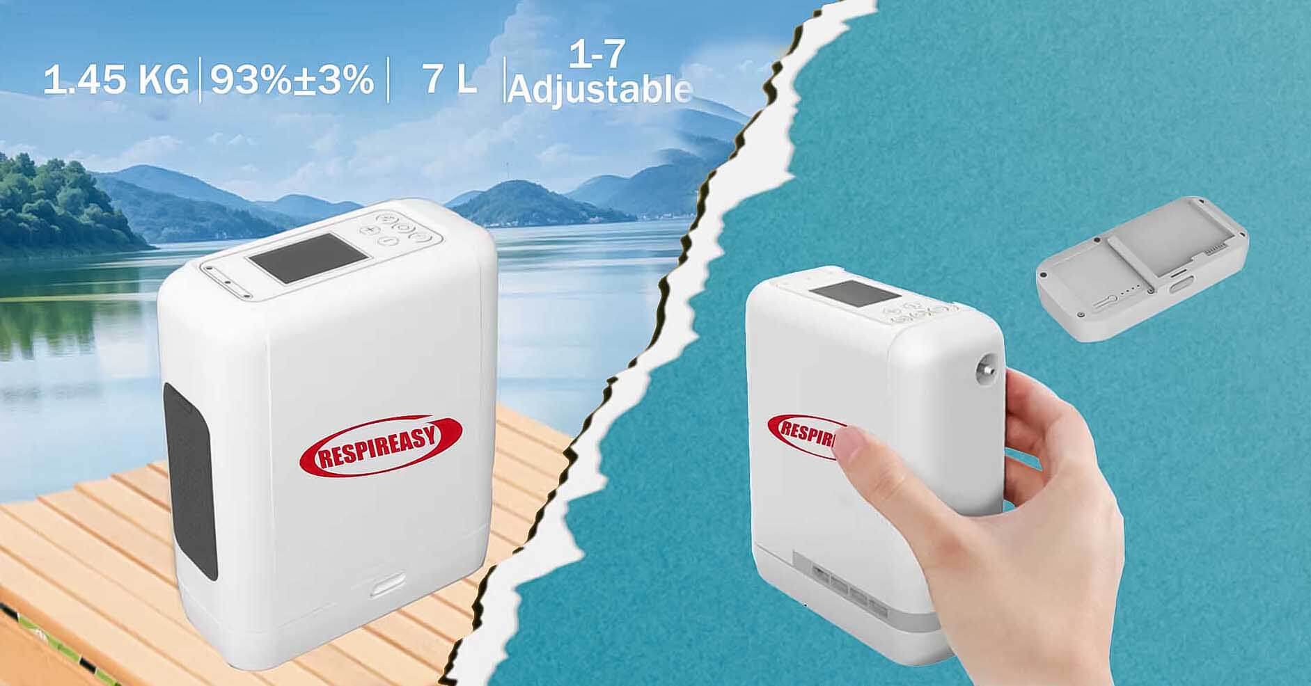 Mini Portable Oxygen Concentrator, Adjustable From 1-7 Liters/Minute, 93% Oxygen Concentration, Equipped With a Removable Lithium Battery.RESPIREASY REA
